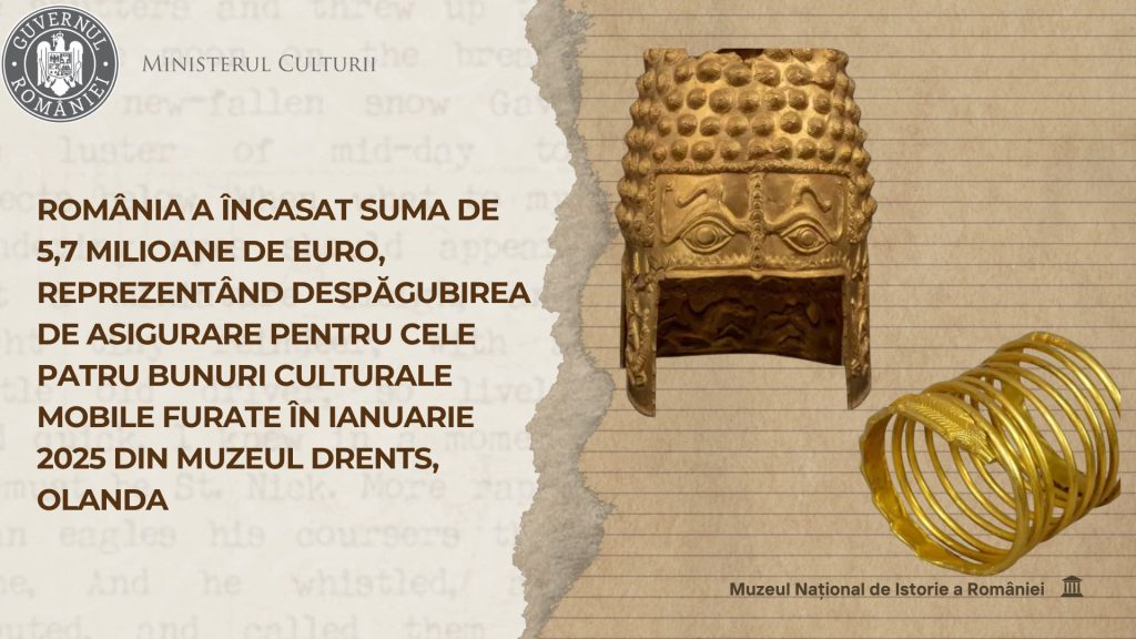 Muzeul Național de Istorie a României a confirmat că suma integrală aferentă poliței de asigurare, respectiv 5.700.000 de euro, a fost virată de către asigurător, potrivit contractului încheiat între părți. Această sumă reprezintă valoarea de asigurare a celor patru artefacte sustrase, printre care se numară trei brățări și Coiful dacic de la Coțofenești, obiecte de o valoare inestimabilă pentru patrimoniul național.